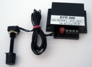 Der Brutmaschinentemperaturregler BTR 500 ist ein vollelektronisch proportionalregelnder Temperaturregler mit einer 1m langen Fühlerleitung und Temperatureinstellknopf. Die Regelung erfolgt auf 1/10°C genau. Der BTR 500 ist sowohl für Flächen- als auch für Motorbrüter geeignet.